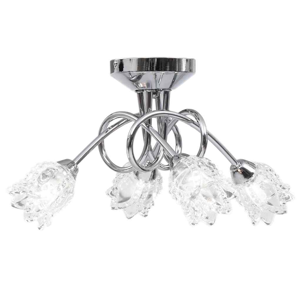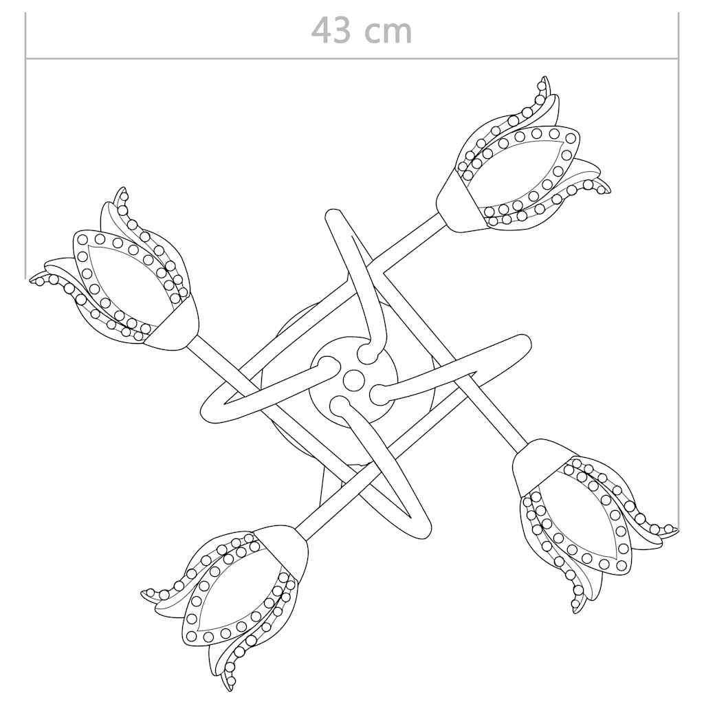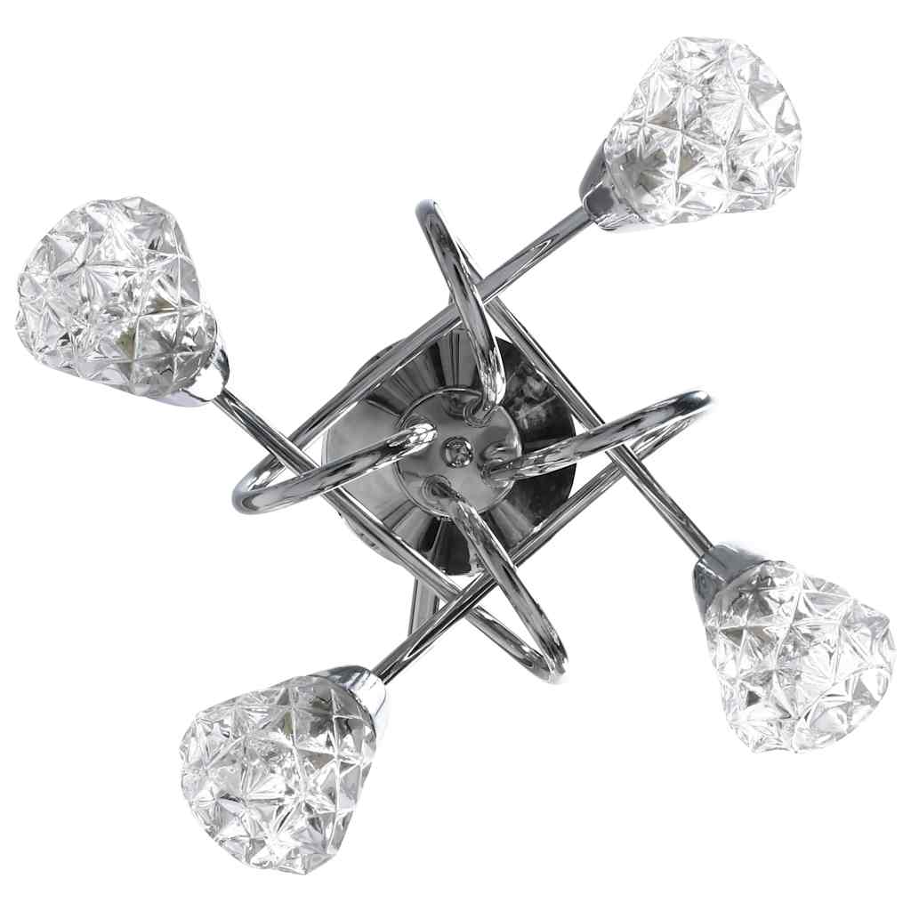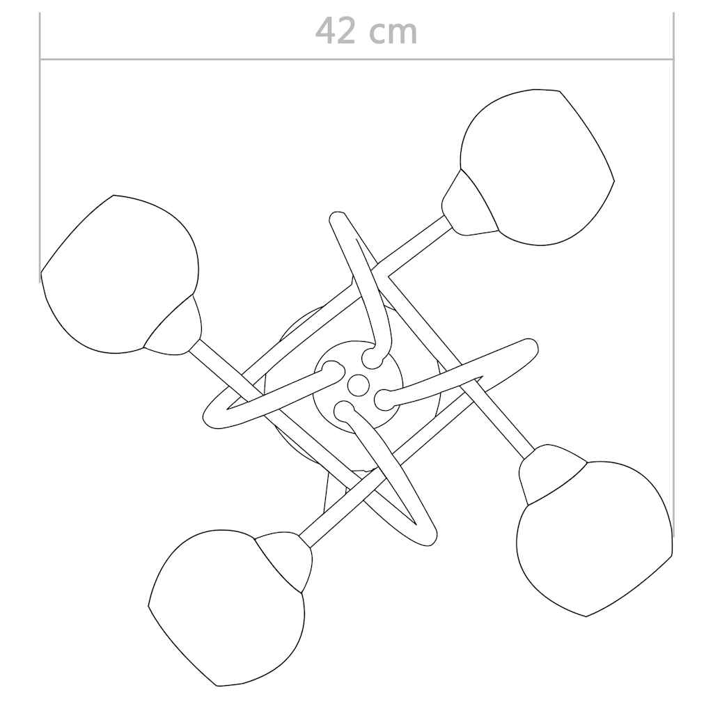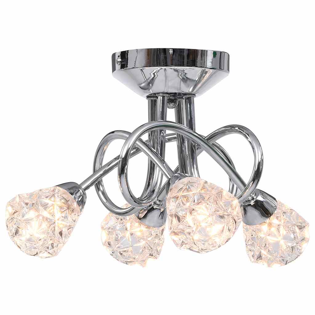 Diese einzigartige Deckenleuchte mit vier Aludrahtgeflecht-Lampenschirme verfügt über ein klassisches und modernes Design. Die Chrom-Politur verleiht dieser Leuchte einen modernen Stil - perfekt für jeden Wohn- oder Schlafzimmer. Diese Lampe kann dank des hochwertigen Metallsockels einfach an jede Decke montiert werden. Die vier verschlungenen Metallrohre verleihen dem Ganzen einen eleganten, schicken Look. Wunderbares Licht wird durch die feinen Aludrahtgeflecht-Lampenschirme gefiltert und jede Ecke des Raumes noch stärker beleuchten. Diese edle Deckenleuchte wird dank ihres angenehmen Schlichtheits überall zum Blickfang. Diese Leuchte eignet sich für vier G9-Lampen. Lieferung umfasst 5 Glühlampen, von denen eine als Ersatz dienen soll.