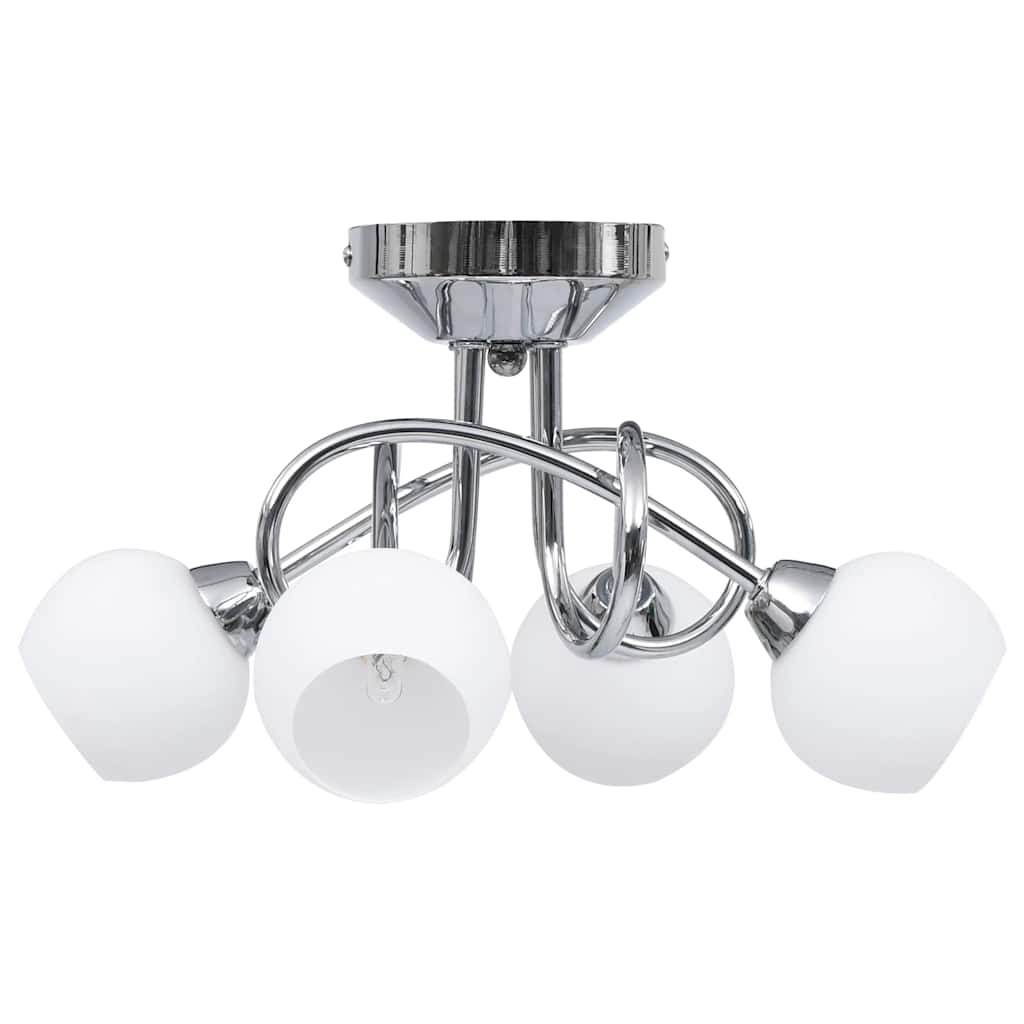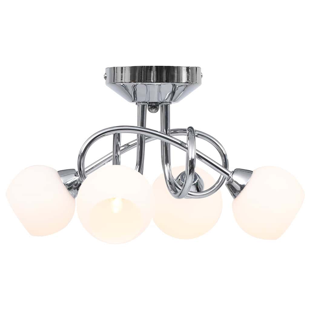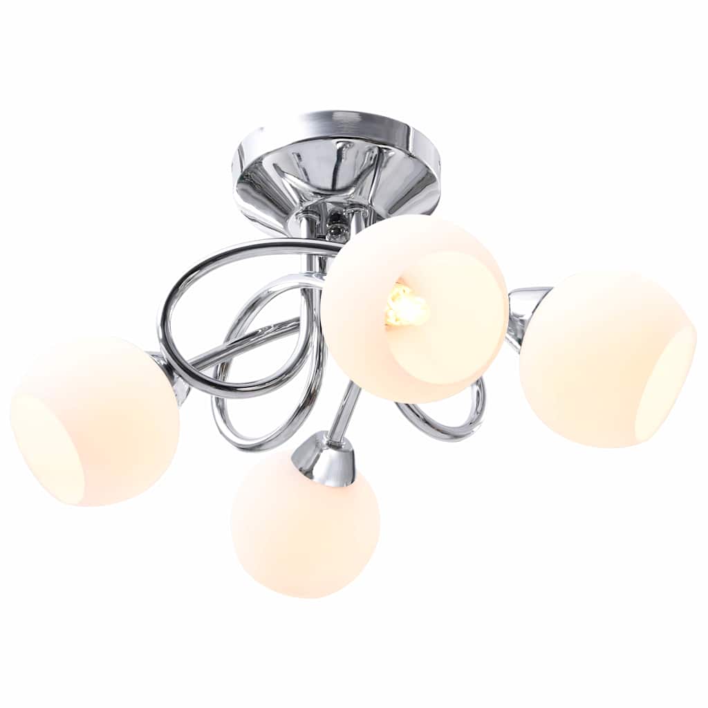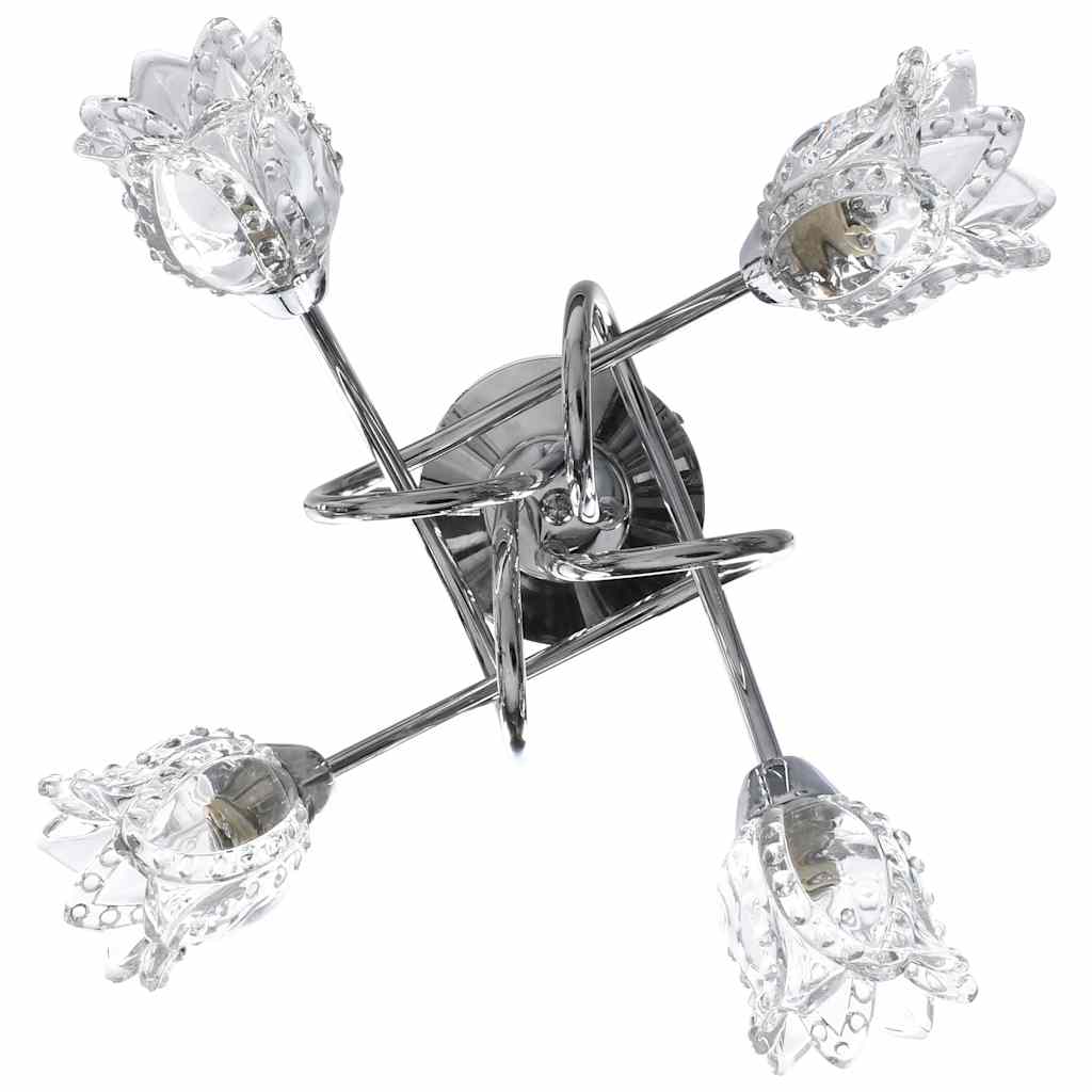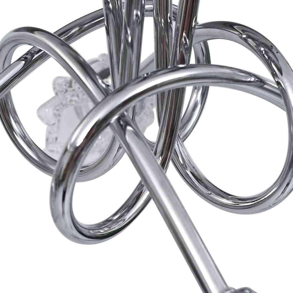 Diese einzigartige Deckenleuchte mit vier Aludrahtgeflecht-Lampenschirme verfügt über ein klassisches und modernes Design. Die Chrom-Politur verleiht dieser Leuchte einen modernen Stil - perfekt für jeden Wohn- oder Schlafzimmer. Diese Lampe kann dank des hochwertigen Metallsockels einfach an jede Decke montiert werden. Die vier verschlungenen Metallrohre verleihen dem Ganzen einen eleganten, schicken Look. Wunderbares Licht wird durch die feinen Aludrahtgeflecht-Lampenschirme gefiltert und jede Ecke des Raumes noch stärker beleuchten. Diese edle Deckenleuchte wird dank ihres angenehmen Schlichtheits überall zum Blickfang. Diese Leuchte eignet sich für vier G9-Lampen. Lieferung umfasst 5 Glühlampen, von denen eine als Ersatz dienen soll.