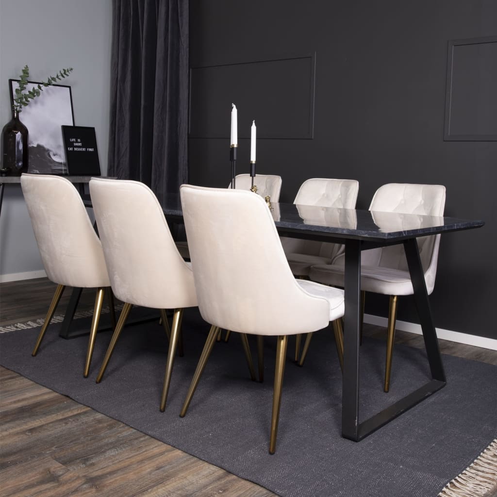 Venture Home Esszimmerstühle 2 Stk. Velvet Deluxe Samt Beige Messing