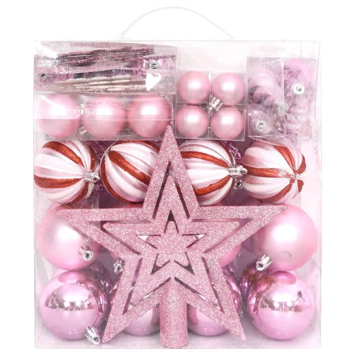 vidaXL 65-tlg. Weihnachtskugel-Set Rosa / Rot / Weiß