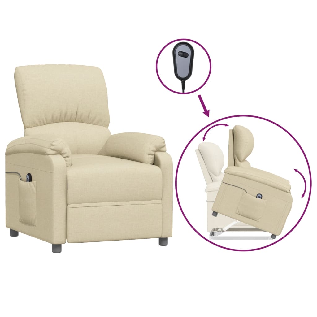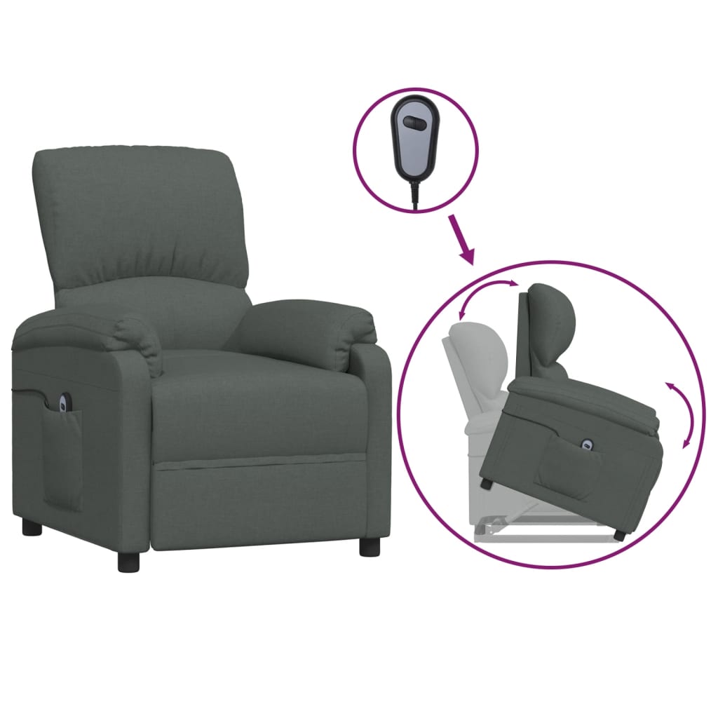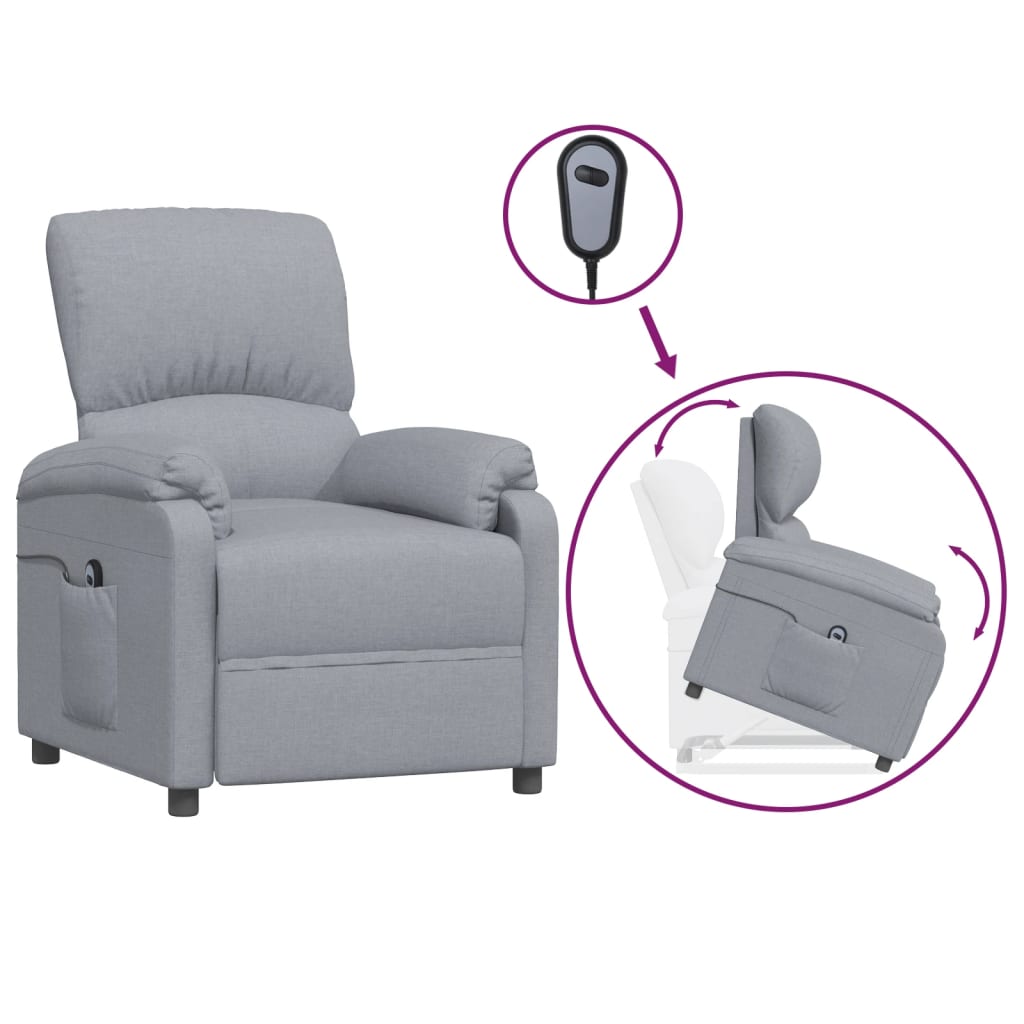 Lehne dich zurück und entspanne dich in diesem äußerst bequemen Aufstehsessel! Manuelle Liegefunktion: Der Sessel kann manuell in 3 Positionen verstellt werden, so dass die Rückenlehne und der Fußteil je nach Bedarf eingestellt werden können.Elektrische Aufstehhilfe: Dieser Relaxsessel ist mit einem Elektromotor zum Anheben ausgestattet. Dank der Aufstehhilfe, die den gesamten Sessel nach oben bringt, kannst du mit der 2-Knopf-Handsteuerung ganz einfach aufstehen, ohne deinen Rücken und deine Knie zu belasten.Bequemes Sitzerlebnis: Die dick gepolsterte Sitzfläche, die Rückenlehne und die breiten Armlehnen sorgen für ein behagliches und wohliges Sitzgefühl. Der Bezug aus Stoff hat ein schlichtes und sauberes Aussehen, ist atmungsaktiv und langlebig.Solider und stabiler Rahmen: Der Rahmen aus Holz und Metall sorgt für eine solide Struktur und hohe Stabilität. Dieser TV-Sessel ist bequem und langlebig.