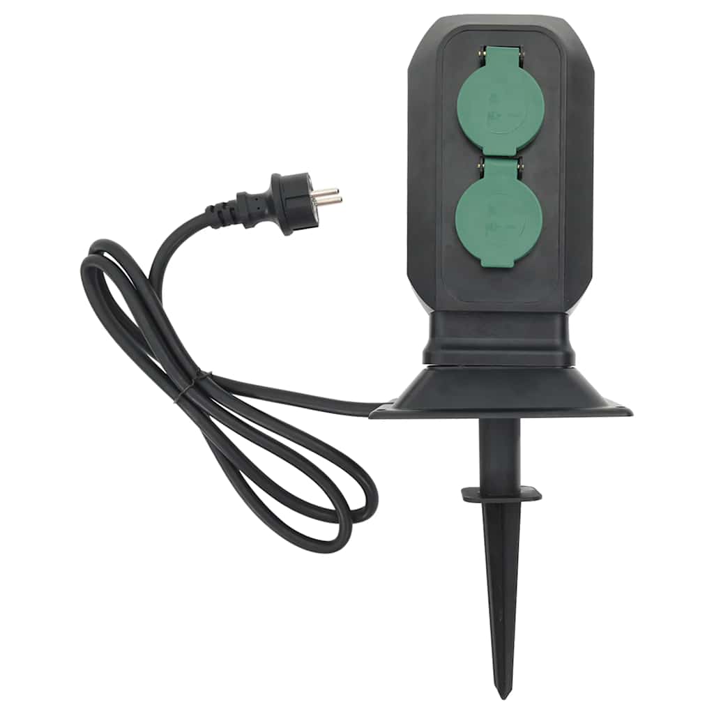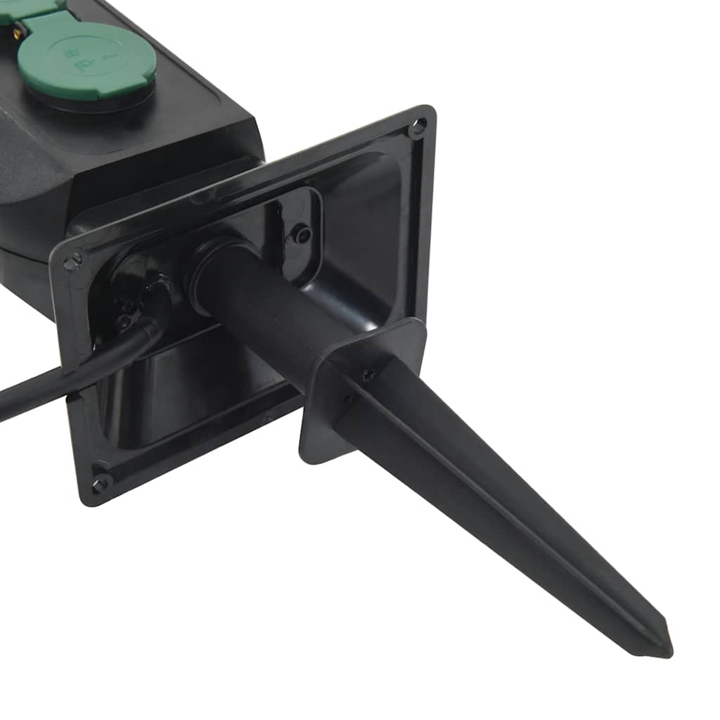 vidaXL Außensteckdose mit Erdspieß 2-fach Schwarz Grün 15,5x11x24 cm