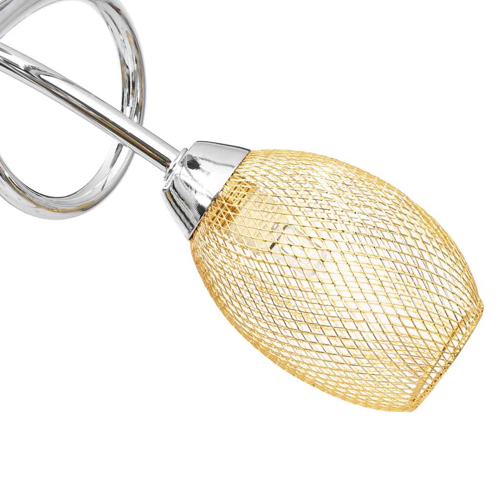 Die einzigartige Deckenleuchte mit drei verchromten Schirmen verfügt über ein modernes Design. Die verchromten Oberfläche verleiht dieser Leuchte einen zeitgenössischen Stil, perfekt für Wohn- oder Schlafzimmer in jedem Einrichtungsstil. Diese Lampe kann an seinem hochwertigen Metallsockel problemlos an jeder Decke montiert werden. Drei verwickelte Metallrohre sorgen für einen schicken Look. Wunderbares Licht fällt durch diese verchromten Gitterschirme und beleuchtet jede Ecke des Raumes. Diese exklusive Deckenleuchte garantiert durch ihre charmante Schlichtheit ein unverwechselbares Aussehen. Diese Lampe ist für drei G9-Leuchtmittel ausgelegt. Die Lieferung umfasst 4 Glühbirnen. Hinweis: Ein Leuchtmittel wird als Ersatz angeboten.