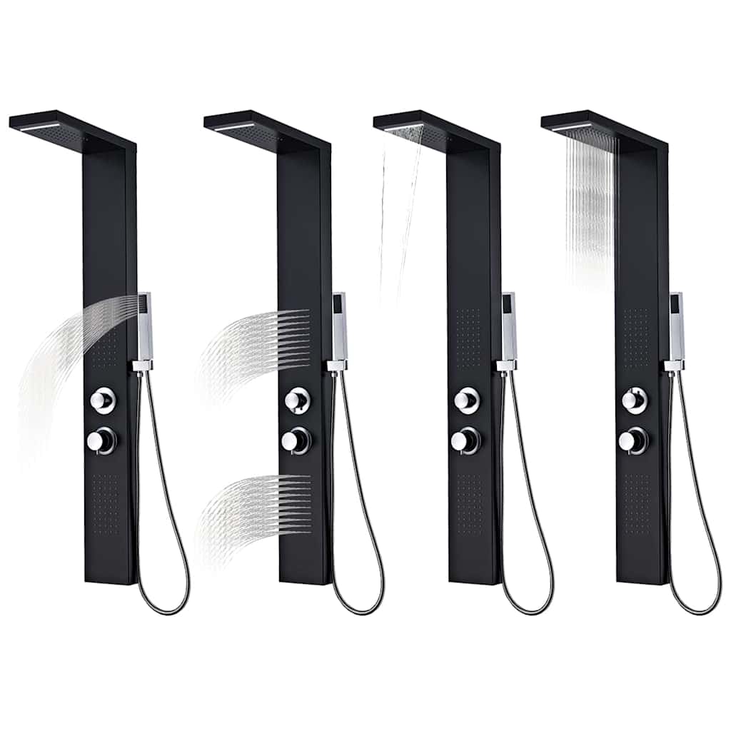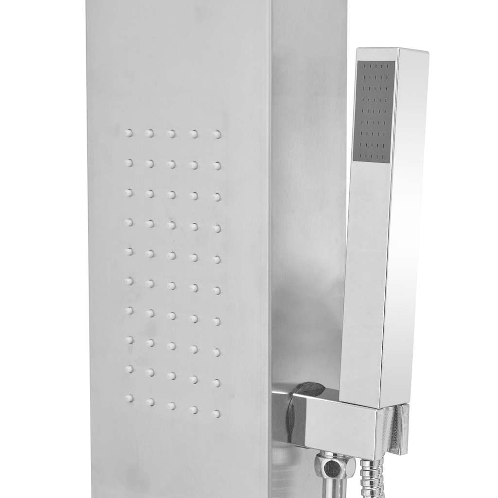 Dieses multifunktionale Duschpaneel-System hat ein stilvolles und natürliches Design und wird Ihr Bad wunderbar ergänzen und ästhetisch aufwerten. Diese Duschkabine besteht aus strapazierfähigem Edelstahl mit einer gebürsteten Oberfläche und ist wunderschön viereckig entworfen worden. Sie verfügt über vier Modi: Regenfalldusche, Kaskadendusche (Wasserfall), Massagedüsen und einen Handduschkopf, welche ganz einfach mit einem Regler ausgewählt werden können. Verwöhnen und entspannen Sie sich mit diesem einzigartigen Duscherlebnis und genießen Sie die moderne Optik dieses wunderschön entworfenen Duschpaneel-Systems.