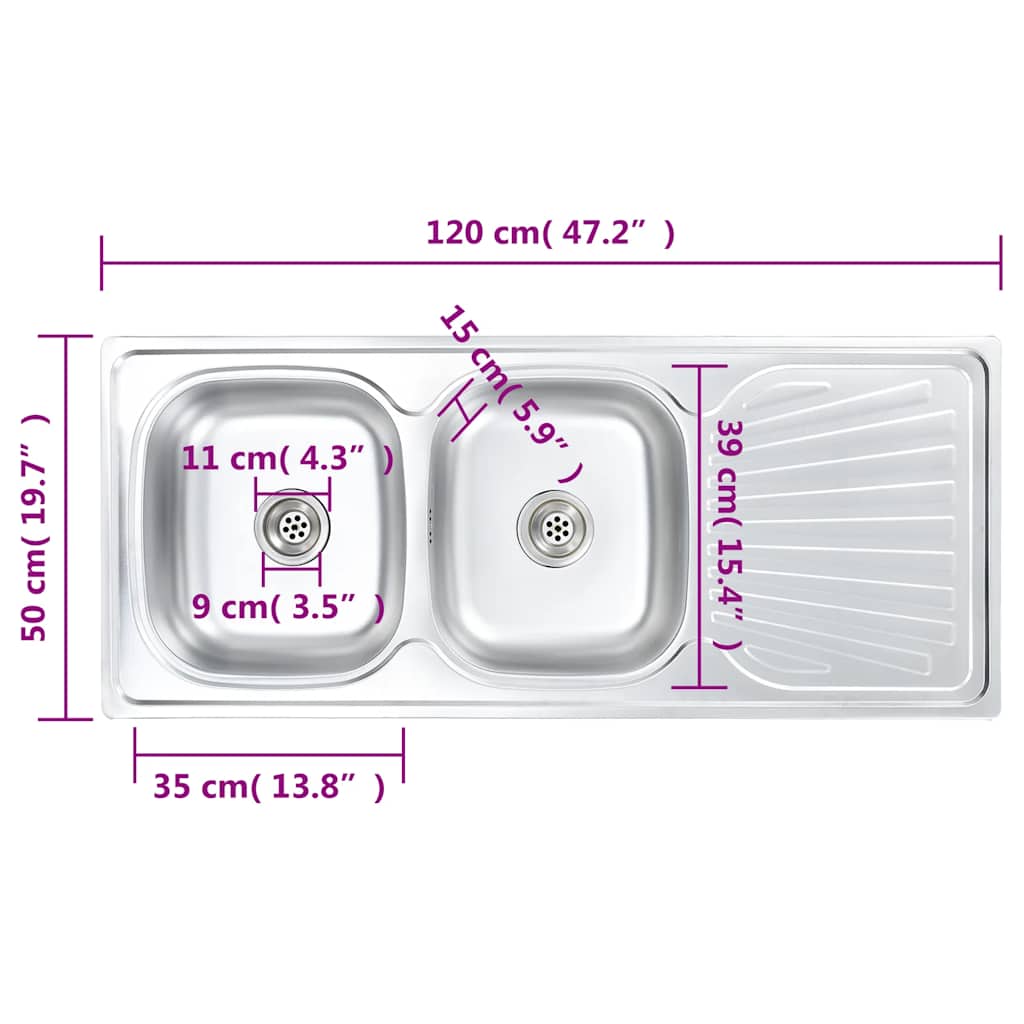vidaXL Einbauspüle mit Sieb und Siphon Edelstahl