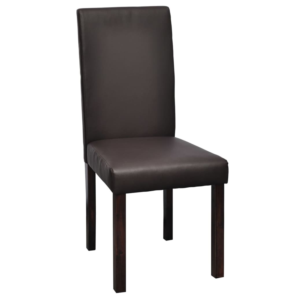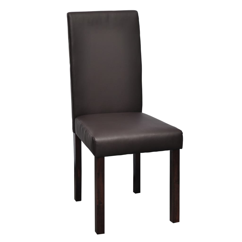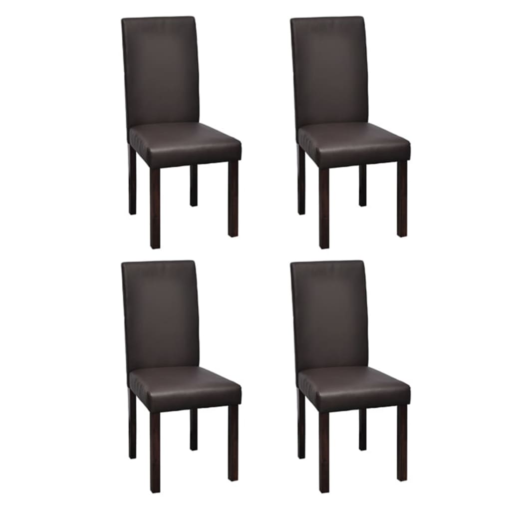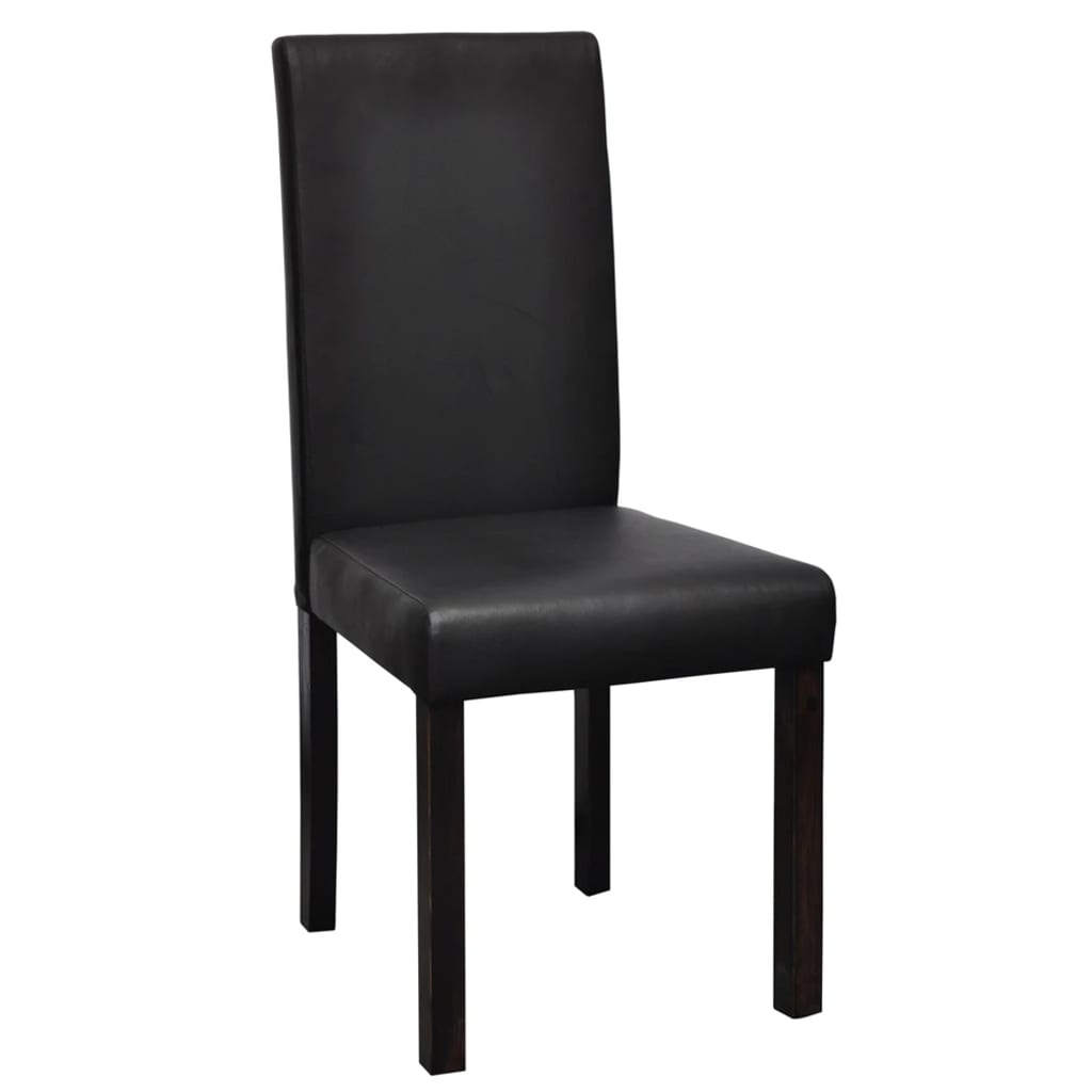 Dieses Set aus 4 Kunstleder-Esszimmerstühlen wird eine große Bereicherung für Ihre Küche oder Ihr Esszimmer sein. Sein trendiges und modernes Design passt perfekt in jede Einrichtung. Mit qualitativ hochwertigem Kunstleder bezogen, sind diese Stühle für zusätzlichen Komfort dick gepolstert. Darüber hinaus sind die Stühle äußerst stabil und langlebig dank des starken Holzrahmens. Die Stühle lassen sich leicht zusammenbauen. Die Lieferung umfasst 4 Esszimmerstühle.