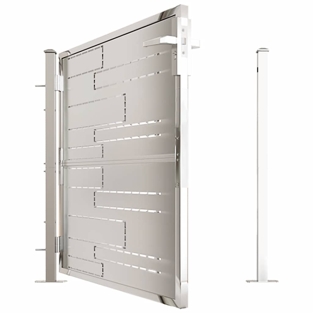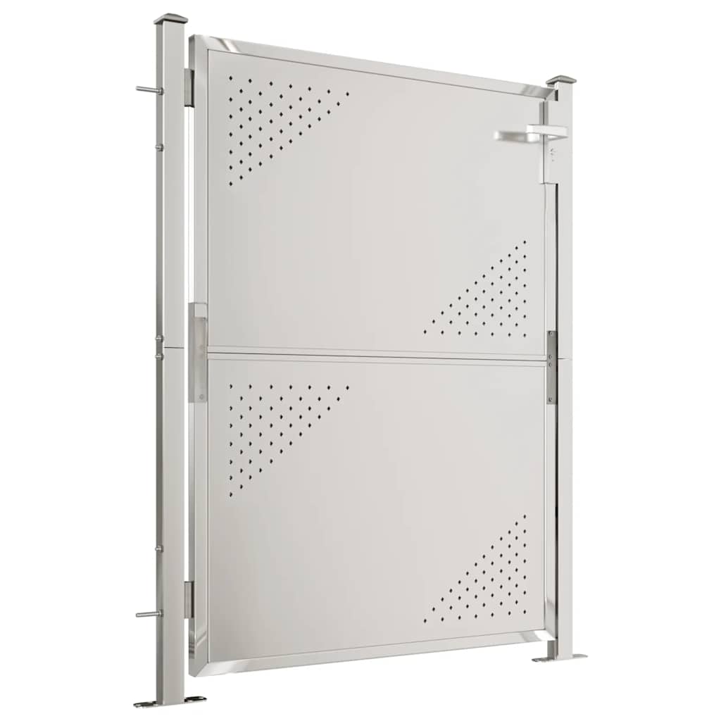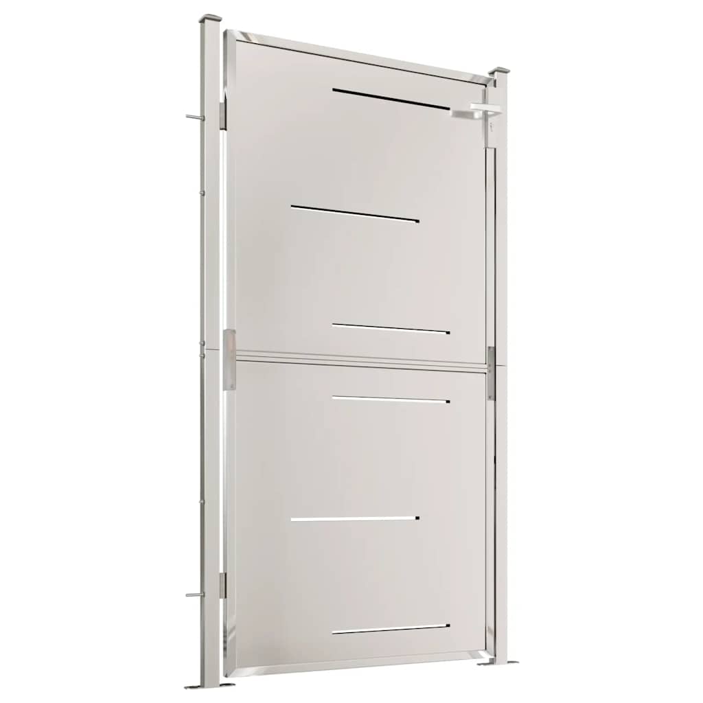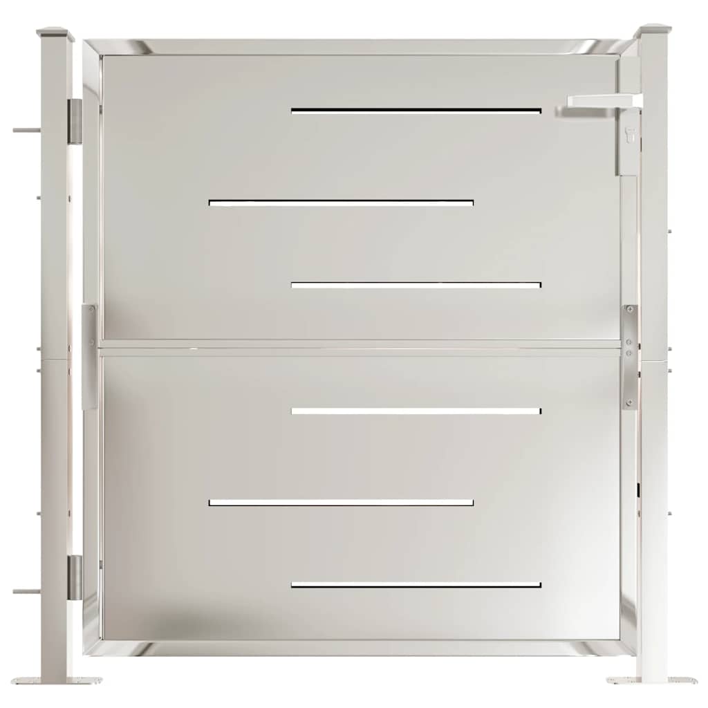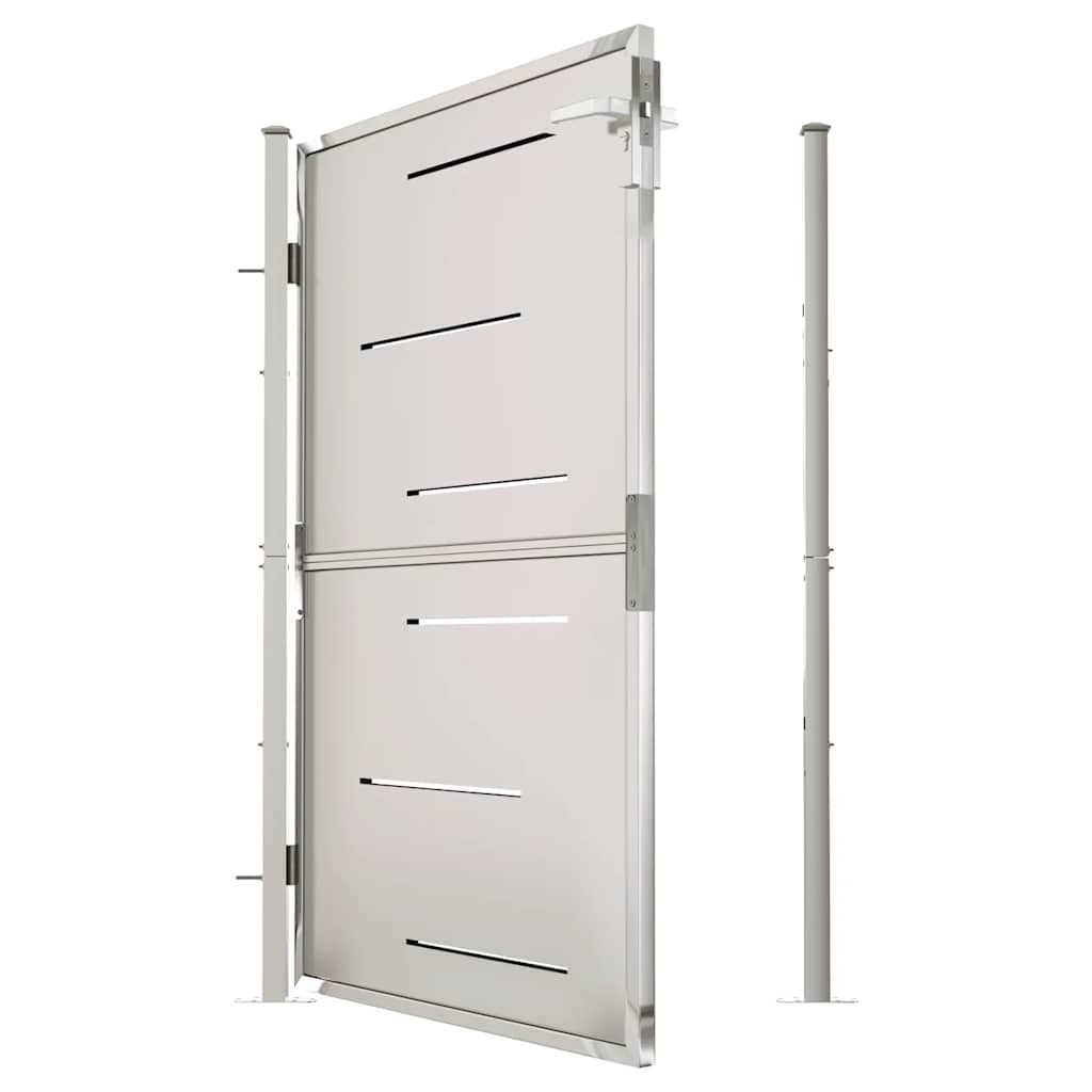 Dieses Gartentor im modernen Stil dient als praktischer Eingang zu Ihrem Garten. Das Zauntor ist äußerst stabil und langlebig und bildet eine praktische Abgrenzung für Ihren Garten, Ihren Innenhof oder Ihre Terrasse Das Gartentor ist aus strapazierfähigem Edelstahl gefertigt und dadurch rost- und korrosionsbeständig. Die Lieferung umfasst auch robuste Scharniere, um eine einfache Montage zu ermöglichen. Das Tor ist mit einem robusten Schließsystem und drei dazu passenden Schlüsseln ausgestattet. Das Montagezubehör zur Befestigung des Terrassentores am Boden ist ebenfalls im Lieferumfang enthalten.