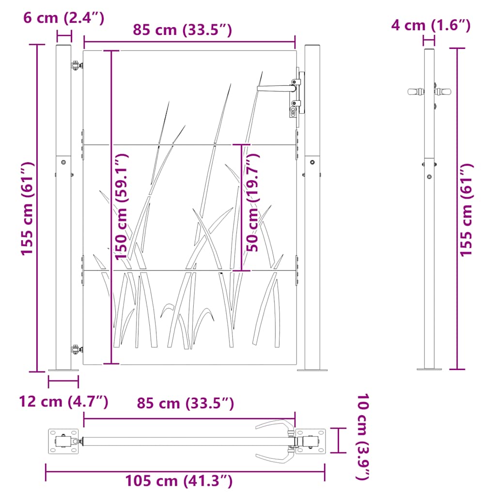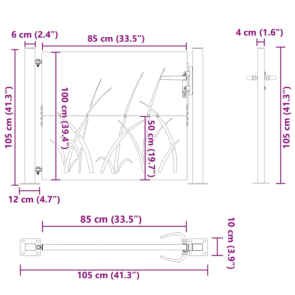 Produktinformationen "vidaXL Gartentor 105x80 cm Cortenstahl Gras-Design"