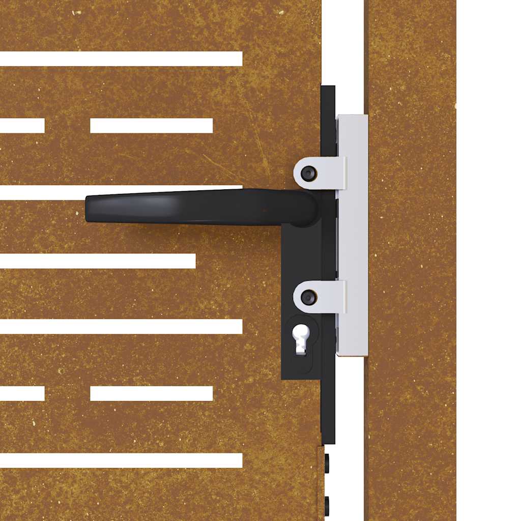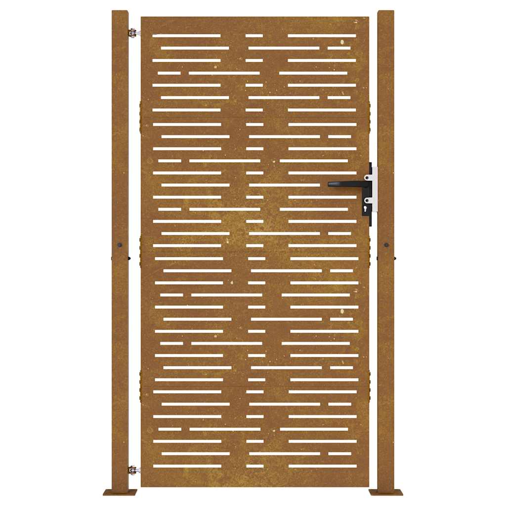 Dieses Gartentor stellt eine perfekte Kombination aus Stärke und Eleganz dar und bietet daher einen idealen Eingangspunkt am Zaun um den Garten oder die Terrasse. Robustes Material: Das Metalltor ist aus Cortenstahl gefertigt. Cortenstahl ist ein wetterfester Stahl, der auf seiner Oberfläche eine rostige Schutzschicht gegen Korrosion bildet, sobald er der Witterung ausgesetzt ist. Du brauchst ihn also nicht zu streichen. Dadurch kannst du Wartungs- und Reparaturkosten einsparen. Das markante Farbe des Cortenstahls ist sicherlich ein Blickfang. Schließlich ist wetterfester Stahl außerordentlich langlebig und hält dem Test der Zeit stand. Lasergeschnittenes Design: Das Zauntor verfügt über ein wunderschönes lasergeschnittenes Design, das deinem Zuhause einen einzigartigen Charme verleiht.Abschließbar: Das Stahltor für zusätzliche Sicherheit ausgestattet abschließbar.Stabile Basis: Die 4 Befestigungslöcher in der Grundplatte der Torpfosten ermöglichen eine sichere Befestigung. Gut zu wissen:Dieses Produkt sollte zusammengebaut werden.Dieses Produkt ist noch nicht verrostet und weist beim Empfang eine normale Metallfarbe auf. Rost wird sich im Laufe der Zeit bilden. Du kannst den Rostprozess beschleunigen, indem du es mit Seifenwasser und Salzwasser besprühst. Um deine Kleidung fleckenfrei zu halten, vermeide den Kontakt mit der sich bildenden Rostschicht.