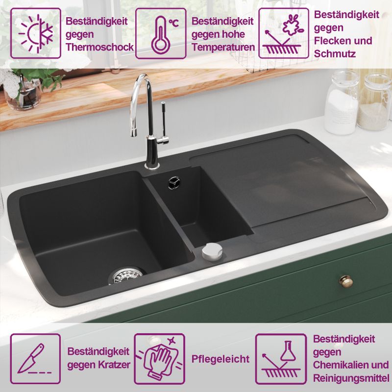 Produktinformationen "vidaXL Granit Spülbecken Doppelbecken Schwarz "