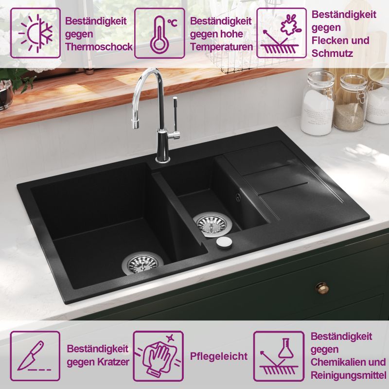 Produktinformationen "vidaXL Granitspüle Doppelbecken Schwarz "