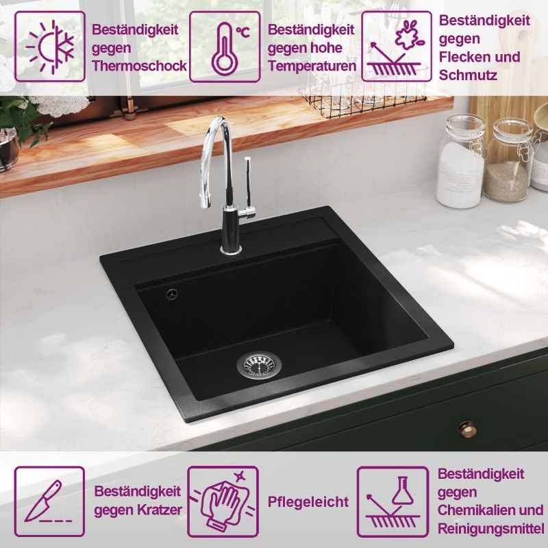 Produktinformationen "vidaXL Granitspüle Einzelbecken Schwarz "