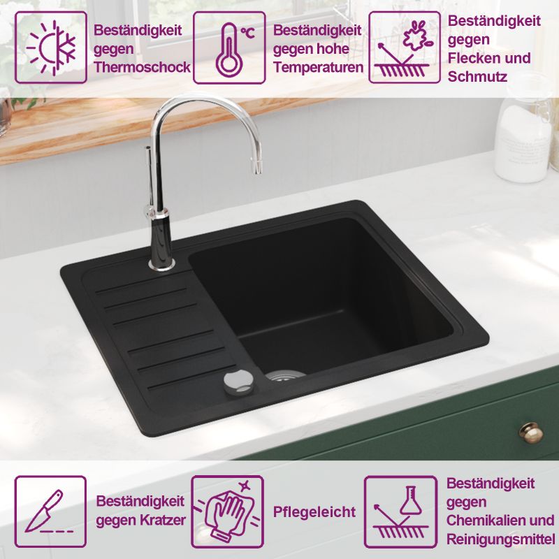Produktinformationen "vidaXL Granitspüle Einzelbecken Schwarz "