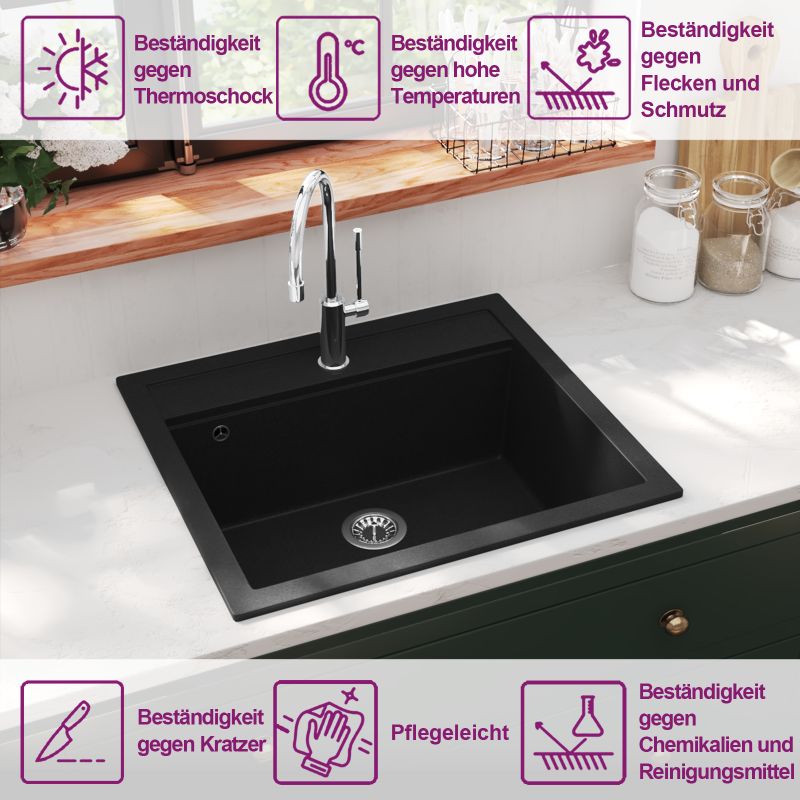 Produktinformationen "vidaXL Granitspüle Einzelbecken Schwarz"
