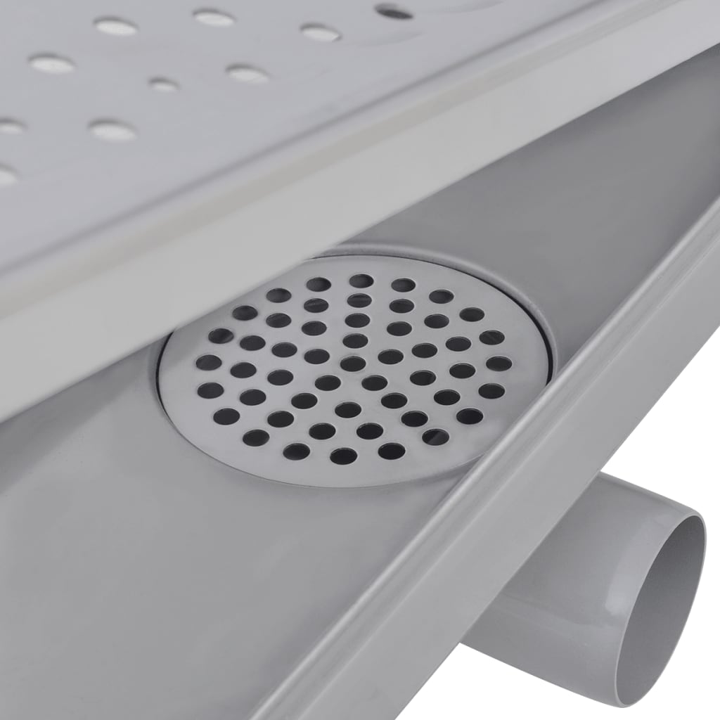 Diesere lineare Duschrinne hat ein modernes und elegantes Design und wird Ihr Badezimmer mit einer stilvolle Note ergänzen. Unsere linearere Duschrinne, die mit einem wasserdichten Tuch geliefert wird, ist leicht zu reinigen. Dank ihrer hohen Entladungskapazität von 40 l / min ermöglicht diese Duschrinne eine kontinuierliche Entwässerung auch bei starkem Wasserfluss. Der lineare Duschablauf ist aus robustem Edelstahl gefertigt und so besonders langlebig. Lieferung umfasst 2 lineare Duschrinnen und 2 wasserdichte Tücher