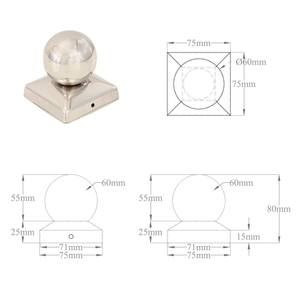 vidaXL Pfostenkappen 6 Stk. Kugelform Edelstahl 71 x 71 mm