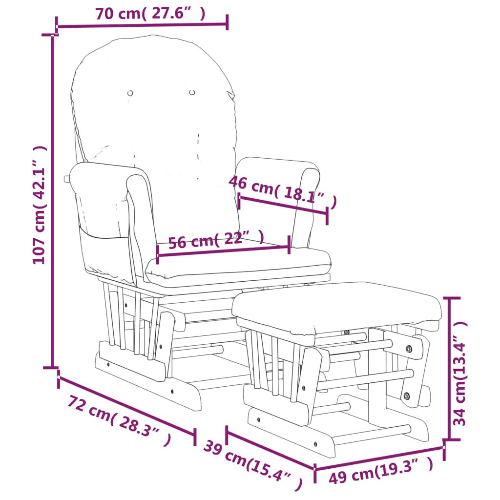 Entspanne dich und genieße deine Freizeit auf diesem stylischen Schaukelsessel mit Hocker! Gleitfunktion: Der Relaxsessel und der mitgelieferte Fußhocker lassen sich hin und her bewegen und eignen sich somit ideal zum Füttern und Beruhigen deines Babys. Breite Anwendung: Dieser Schaukelstuhl lässt sich überall im Haus einsetzen, sei es im Kinderzimmer, um dich um dein Baby zu kümmern, oder im Wohn- bzw. Schlafzimmer zum Entspannen.Langlebiges Material: Massives Kautschukholz ist ein wunderschönes Naturmaterial. Kautschukholz besitzt eine dichte Maserung und ist stoßfest und langlebig. Stoff weist eine schlichte und saubere Optik auf und ist auch atmungsaktiv und langlebig.Bequemes Sitzerlebnis: Der Schaukelsessel ist mit dicken Kissen und gepolsterten Armlehnen versehen, um höchsten Komfort zu bieten.Praktisches Design: Dieser gleitende Schaukelstuhl verfügt über Seitentaschen, in denen du kleine Gegenstände in Reichweite aufbewahren kannst. Gut zu wissen:Um die Montage so einfach wie möglich zu machen, wird jedes Produkt mit einer Anleitung geliefert.