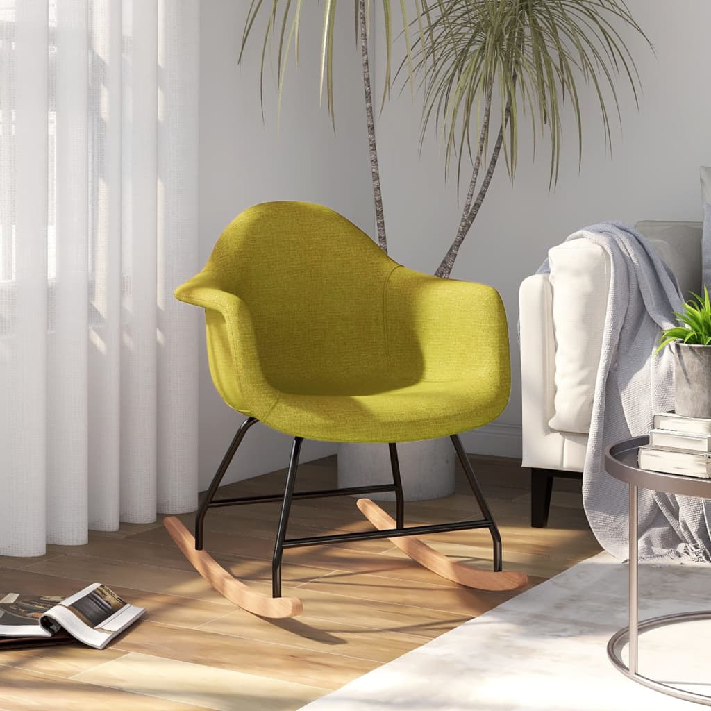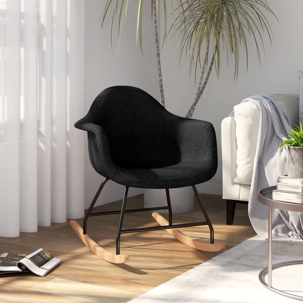 Sitzen Sie bequem auf diesem Schaukelstuhl. Er ist eine perfekte Wahl zum Entspannen. Mit Stoff gepolstert, bietet Ihnen der Stuhl optimalen Sitzkomfort und auf den Armlehnen können Sie auch Ihre Arme ausruhen. Dank seiner robusten Konstruktion und seines einzigartigen Designs bietet Ihnen der Schwingsessel ein angenehmeres Sitzerlebnis.